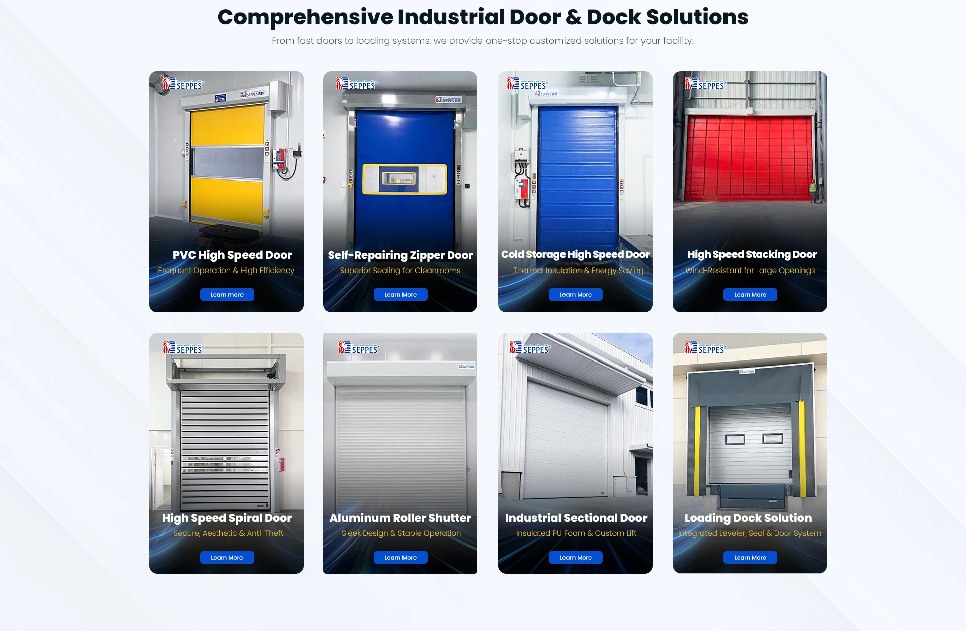 Main categories: High Speed Door, Industrial Sectional Door, High Speed Door Motor, Dock Shelter, Dock Leveler